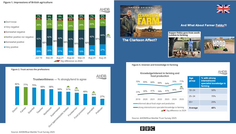 UK food self‑sufficiency currently sits at around 60%. Historically it has fluctuated: below 50% pre‑WW2, peaking above 75% in the 1980s, before drifting down again. Improving farming profitability and food security is now firmly back in focus. One route, recommended by Minette Batters in her “Farming Profitability Review” (December 2025) is to “grow, make and sell more from our farms by strengthening the British food and drink brand at home and abroad”.