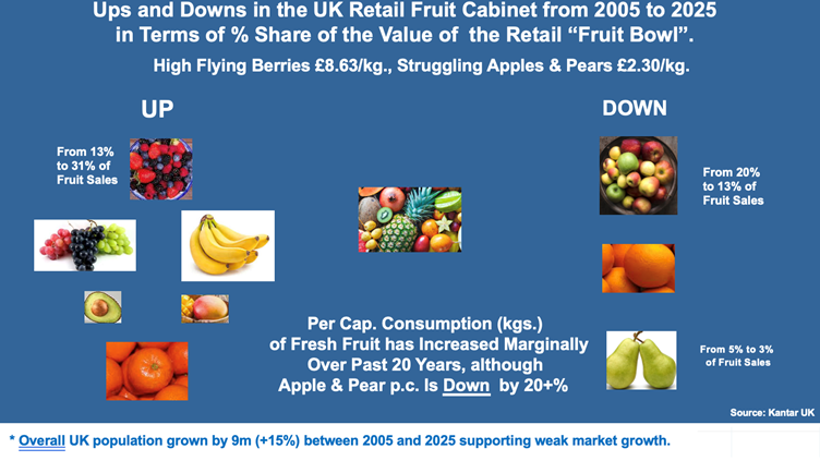 British consumers benefit from some of the lowest food prices in Western Europe, yet living costs are high and half of households are financially stretched. Price matters, but it is not the only driver. Fruit purchasing patterns show that consumers will pay more for perceived value, as seen in the rapid growth of berries despite higher prices.