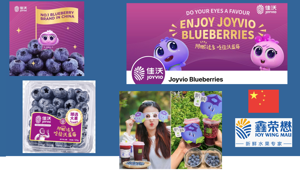 Returning to the healthiness of fruit and vegetables, where can customers garner compelling claims as to the benefits of fruit and veggies – the fresh produce aisles of supermarkets? No – wander around pharmacies such as Boots and note that cucumbers and berry extracts are lauded for their skin beautification properties. In the premium juice and smoothie aisles of supermarkets, product labels are crammed with claims relating to F&V portion equivalents which can be ingested with a few glugs in seconds! Tesco.com is a case in point: there are hundreds of fruit and vegetable drinks, juices and smoothies on offer: e.g. happy monkey smoothies … and on front of pack “made for kids with 100% fruit, No Bits (God forbid!), no additives or added sugar, 1 full portion of fruit, great for lunch boxes”. Are these fresh fruit and veg. competitors? Sure, why bother buying the real thing? In the fresh produce industry, we’ve largely relied on others to make motherhood claims about our F&V. But, claims that they are “a good source of vitamins and minerals” are insufficiently visceral, they don’t connect. At a time when consumers say they want to eat more healthily, they seek specific credible information on what the benefits are to me and my family (and, more challengingly “how long before I can see the benefit?”). Joyvio, the leading fresh blueberry brand in China, hits this nail on the head – its claim that blueberries improve/are essential for eye health is widely embraced by consumers.